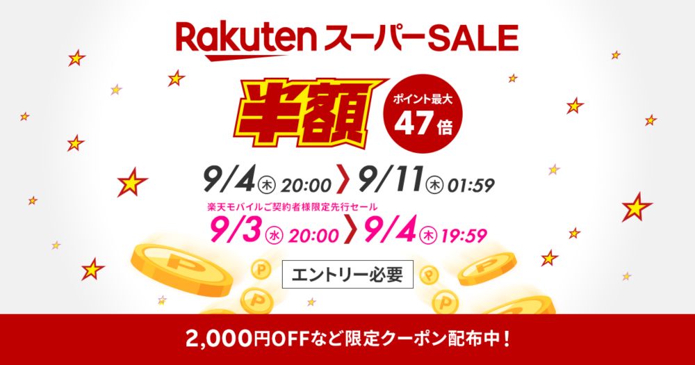 本日は楽天スーパーセール最終日かつ0のつく日でエントリーで還元が大きくなるお買い得な日!