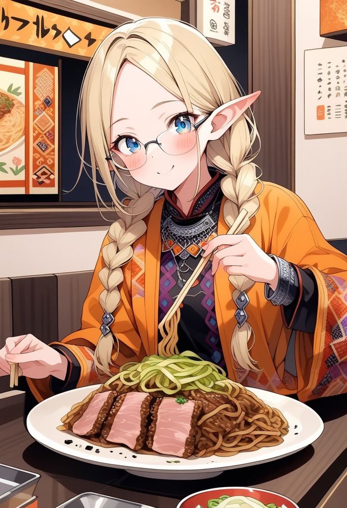 一番焼きうどんっぽいのはChatGPTかな、Geminiも太麺だったら完璧?Seaartは他の方の食べてる作品でも、両手に箸なのでSeaartのAIの癖?