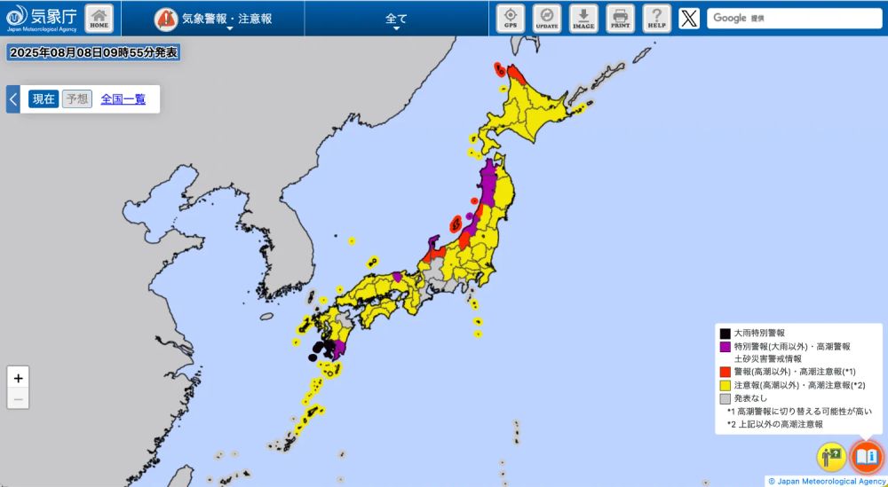 #石川県 #兵庫県 の紫色は #高潮警報