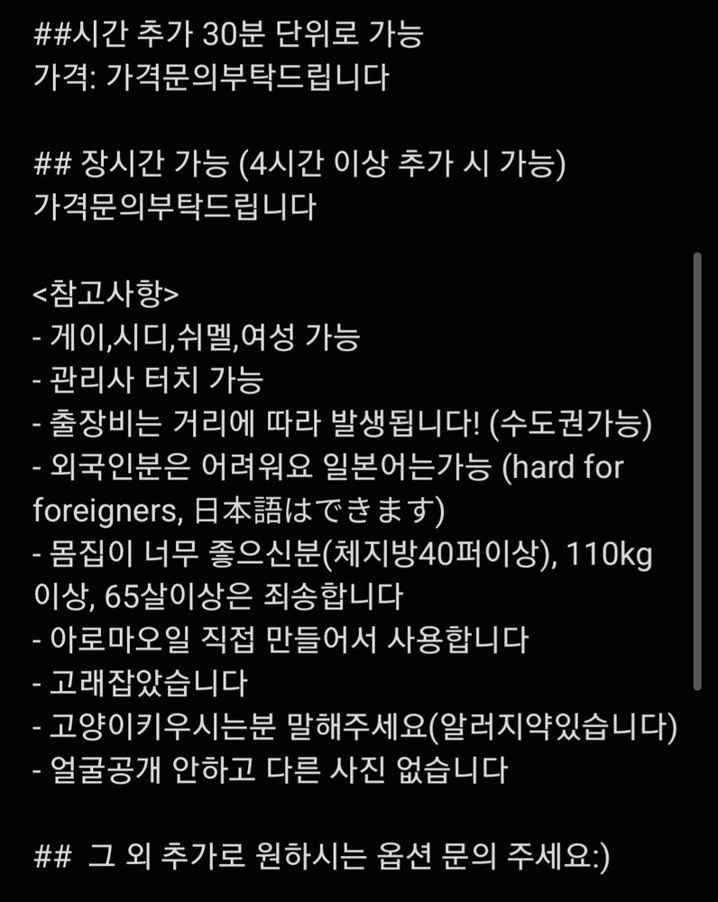친절하고 실력있는 한국 관리사님께서 고객님의 편안한 휴식을 책임지겠습니다!