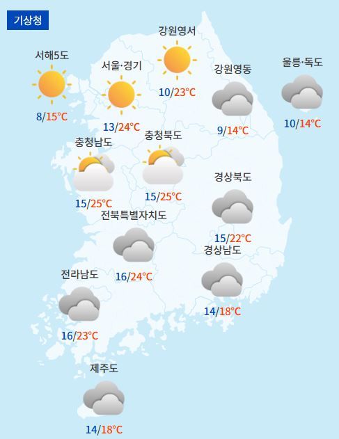 이천 : 흐림/흐림, 16℃/23℃, 30%/40%