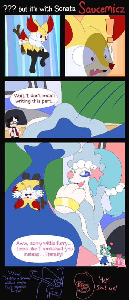 This is based on a scene from an NSFW Pokémon video called Furrymon. I recommend NOT searching it up. Let's just say this comic is an alternative for that specific scene where Primarina wins in a more SFW manner.