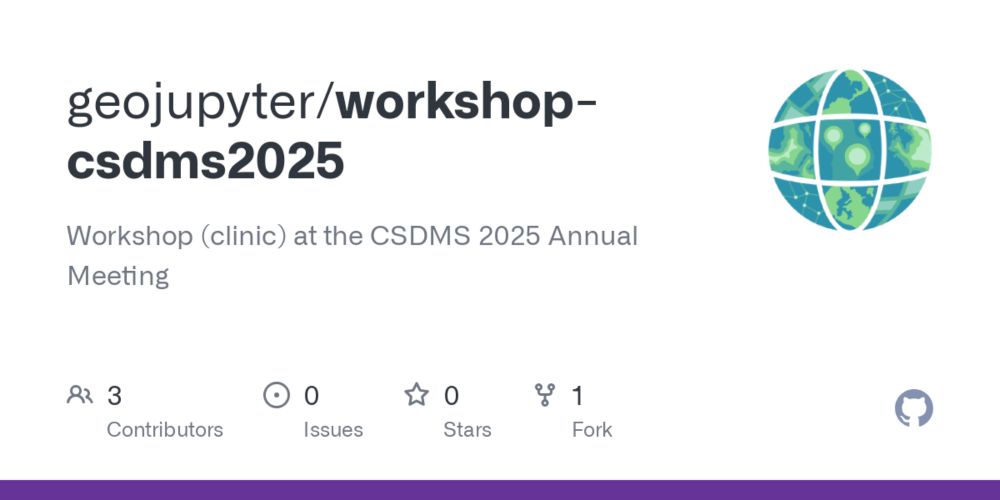 GitHub - geojupyter/workshop-csdms2025: Workshop (clinic) at the CSDMS 2025 Annual Meeting