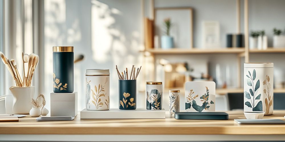 The imagery presented showcases an exquisite line of nature-inspired packaging, merging functionality with modern aesthetics.