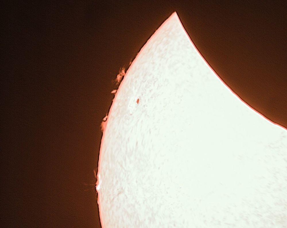Animation of #prominence activity from #AR14048 during a C-class flare on 29th March 2025, during the #PartialSolarEclipse I had to manually crop and align the images as best I could to try to show how quickly the region was changing #CoronadoPST 2x Barlow #ASI120MC camera, #SkywatcherAZGTi mount