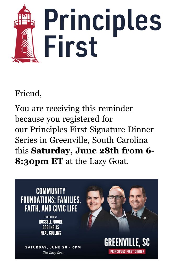 Can’t stop. Won’t stop. See you Saturday in Greenville! A couple of tickets are still available. www.eventbrite.com/e/principles...