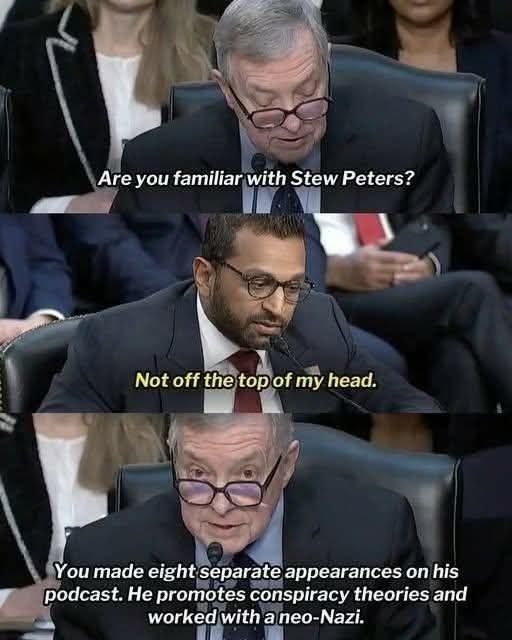 Before becoming #fbi director, #kashpatel appeared 8 separate times on a podcast hosted by #farright #conspiracytheorist #stewpeters, who promotes #holocaustdenial. Peters posted a photo of […]