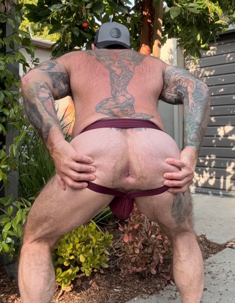 Today's theme is "Orange" and I'm rocking out my @sweatyjohnson69.bsky.social jockstrap while wearing another @burlyshirts.bsky.social tee.