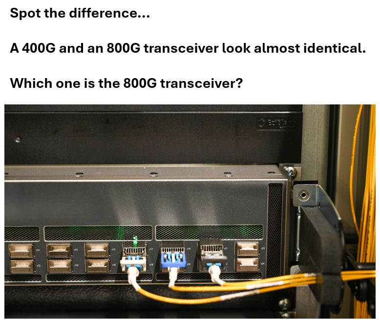 Spot the difference? 😜 A 400G & 800G transceiver look identical, but one has 2x the power.
