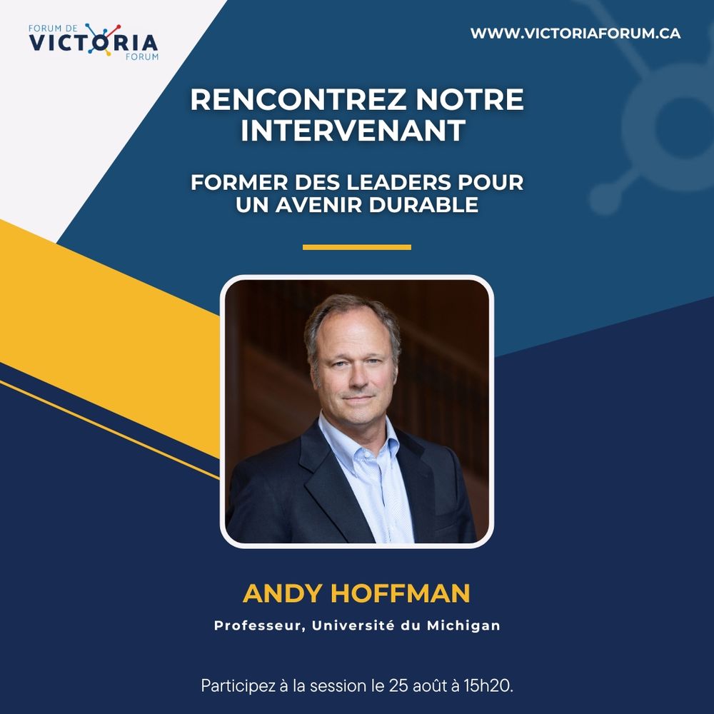 Join us Aug 25 for “Developing Leaders for a Sustainable Future” featuring Andrew Hoffman, Professor at the University of Michigan, at #VictoriaForum2025!📍 University of Victoria 🌐 victoriaforum.ca #Leadership #GlobalDialogue #VictoriaForum