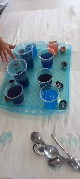 Changed my mind on the dye readiness of the white shirt, will re-tie the geodes with more floss.