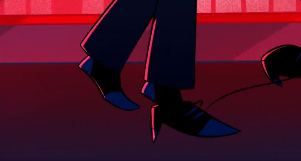 Niche take I only just realized I feel strongly about—I think if you de-stylize Vox, he's actually wearing a more classic relaxed or tapered fit of slacks vs. slim fit. As evidence, I present this single frame from episode 4 where we see how his cuff compares to his ankle #hazbinvox #hazbinspoilers