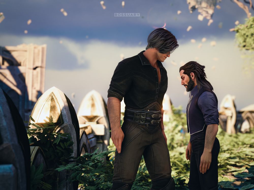 (listen, i am very proud of the timing of this shot. it looks like Lucanis is escorting Evariste on a dumb tour and will you just look at his pleased lil face.)