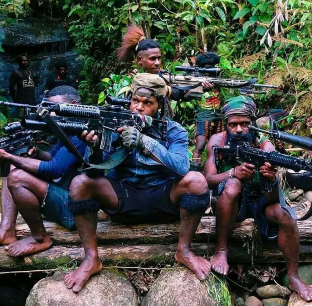 The fighters are carrying an uncommon AR-10 platform rifle, a trophy Pindad SS2-V1 rifle with SPG1-V4 grenade launcher, M16A1 (Colt 603) rifle and Pindad SS1-V1 rifle.