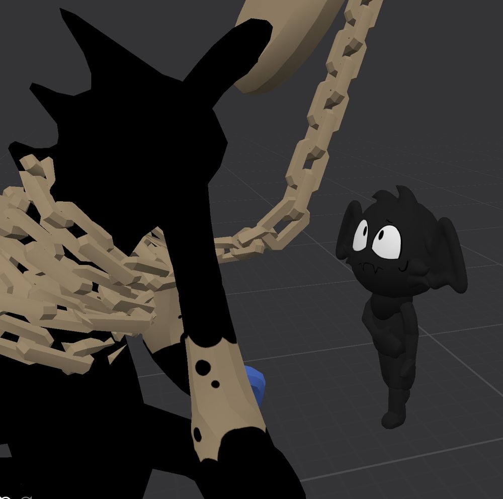So ive been learning to 3D model and the first thing I make is oc x canon- the faces were drawn by me, Onyx's bat wings, head fluff and cheek fluff were also made by me, the rest i got from sketchfab :3 #ocxcanon #dandysworld #dandysworldoc #dyle #dyletimesly #twisteddyle