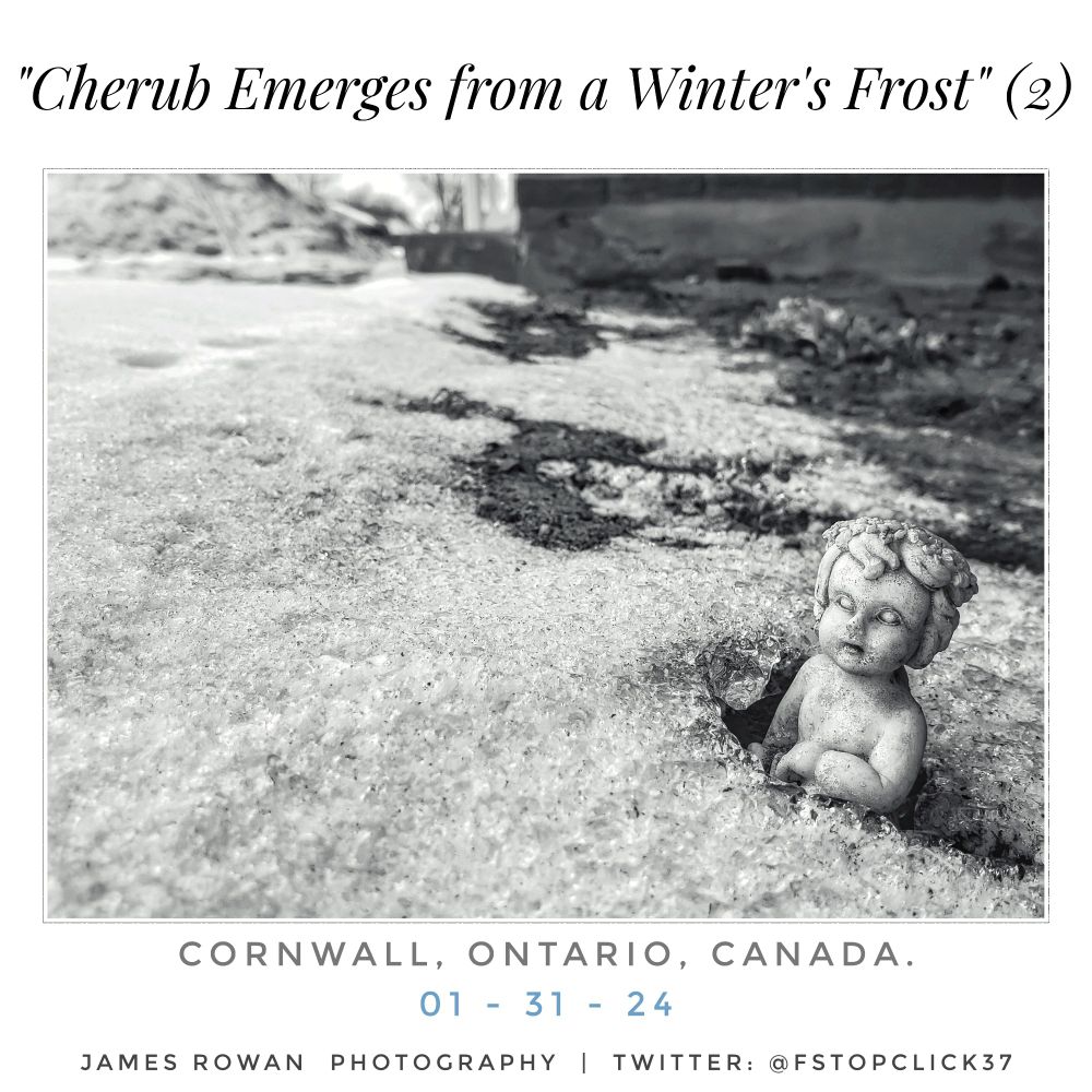 #photography #streetphotography #monochrome #blackandwhite #winter #snow #ice #melting #cherub #angel #small #tinymiracles #observation