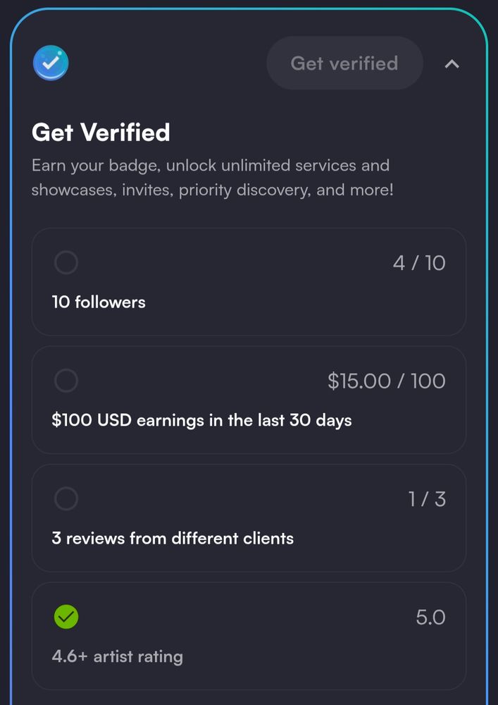 I'm currently on a quest to become a Verified Artist on VGen! 🛡️